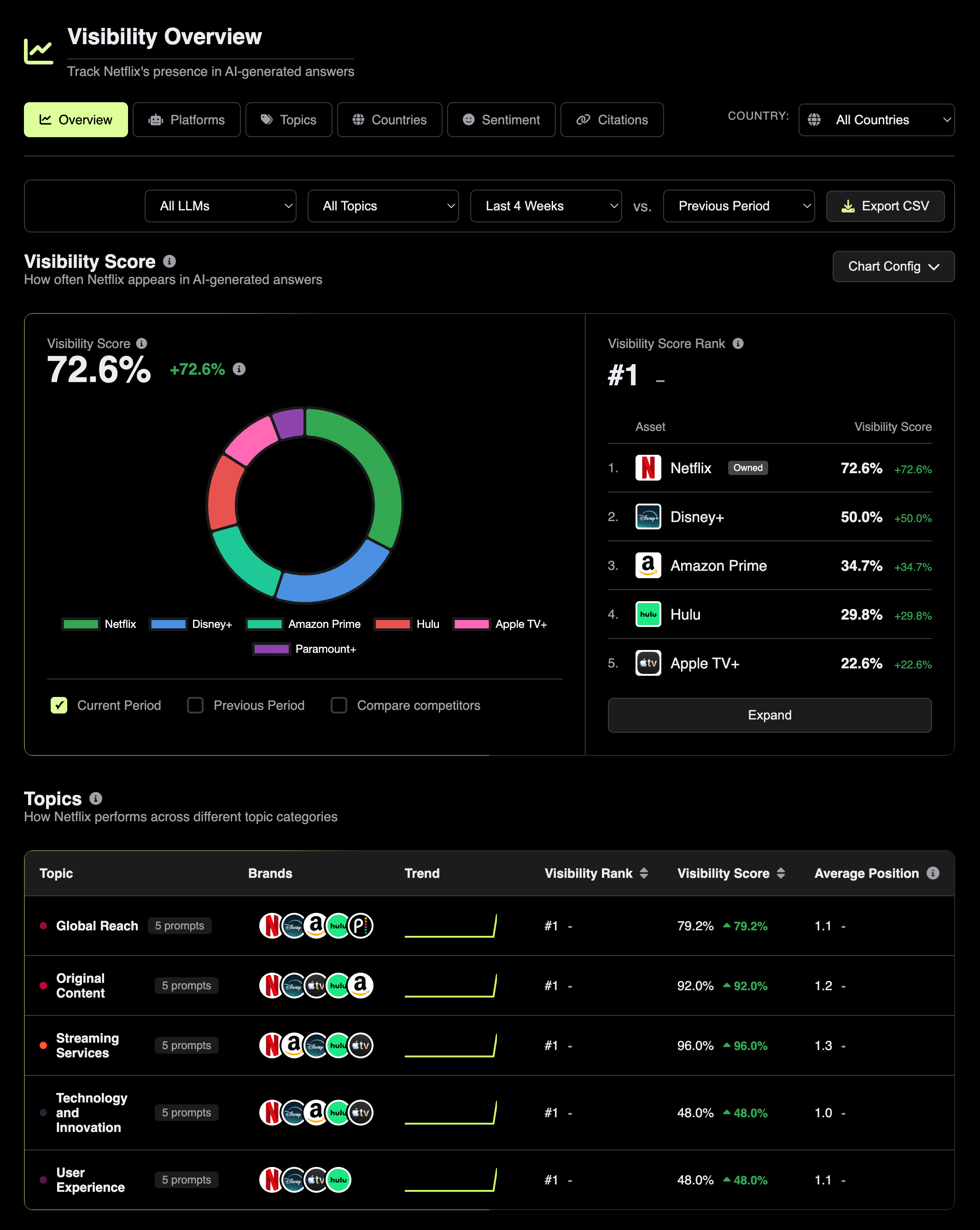 Identify who else is winning in your categories to inform your strategy. Benchmark your brand visibility against the competition.